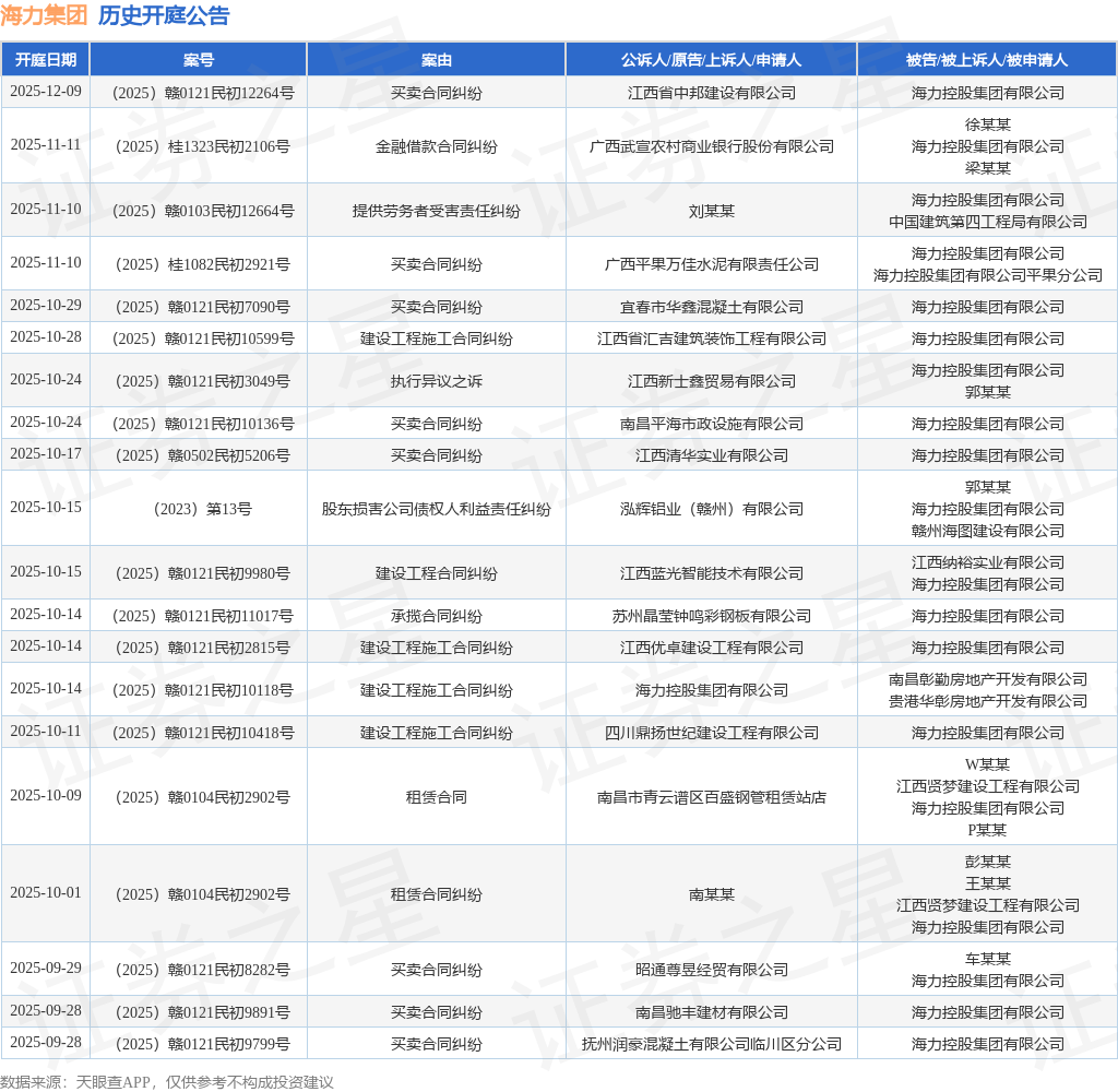 证券之星消息,根据天眼查APP显示,近日公布了一则海力控股集团有限公司作为被告/被上诉人的开庭公告,详细内容如下: