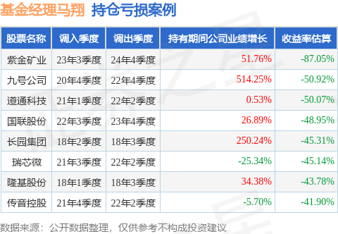 马翔管理的汇添富成长精选混合A基金在23年3季度买入紫金矿业,在持有1年又1个季度后在24年4季度卖出。持有期间的估算收益率为-87.05%,持有期间紫金矿业在2023年到2024年的年报归属净利润增幅达51.76%。