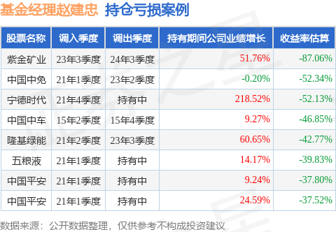 赵建忠管理的中银中证800指数型发起式A基金在23年3季度买入紫金矿业,在持有1年又0个季度后在24年3季度卖出。持有期间的估算收益率为-87.06%,持有期间紫金矿业在2023年到2024年的年报归属净利润增幅达51.76%。