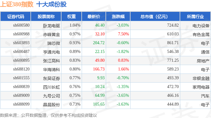 证券之星消息,10月13日,上证380(000009)指数报收于6632.96点,跌0.34%,成交2343.22亿元,换手率2.16%。当日该指数成份股中,上涨的有108家,华特气体以12.52%的涨幅领涨,下跌的有265家,浙江鼎力以7.71%的跌幅领跌。