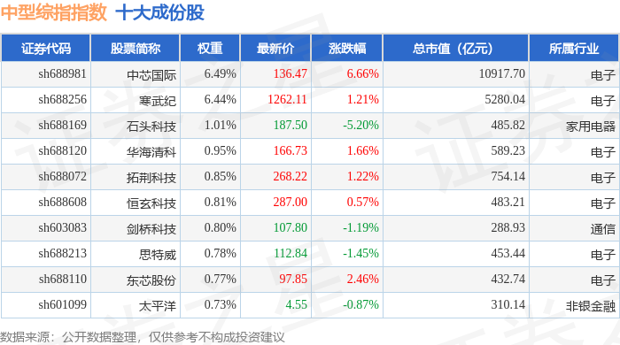 中型综指(000020)指数十大成份股详情如下:
