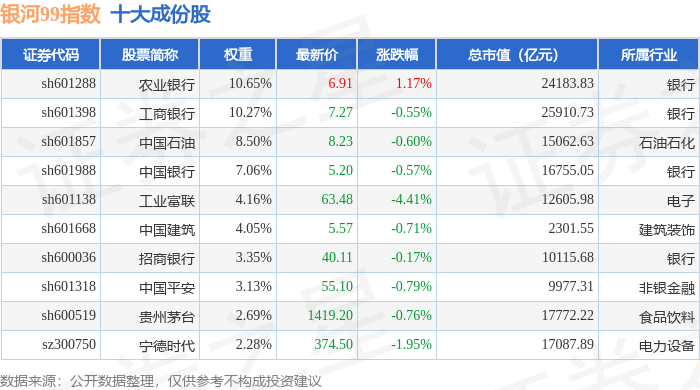 证券之星消息,10月13日,银河99(000959)指数报收于7703.39点,跌0.39%,成交3568.87亿元,换手率0.58%。当日该指数成份股中,上涨的有31家,金山办公以8.32%的涨幅领涨,下跌的有67家,三花智控以5.23%的跌幅领跌。