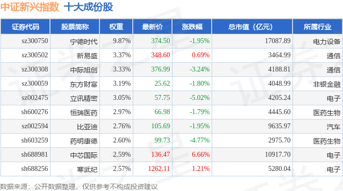 证券之星消息,10月13日,中证新兴(000964)指数报收于11156.84点,跌0.73%,成交4220.12亿元,换手率2.06%。当日该指数成份股中,上涨的有37家,北方稀土以10.0%的涨幅领涨,下跌的有62家,歌尔股份以6.8%的跌幅领跌。