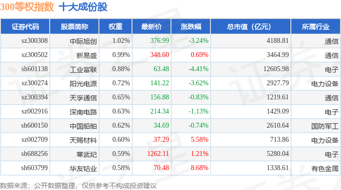 证券之星消息,10月13日,300等权(000984)指数报收于4681.44点,跌0.36%,成交7140.02亿元,换手率0.96%。当日该指数成份股中,上涨的有95家,华大九天以11.78%的涨幅领涨,下跌的有200家,歌尔股份以6.8%的跌幅领跌。