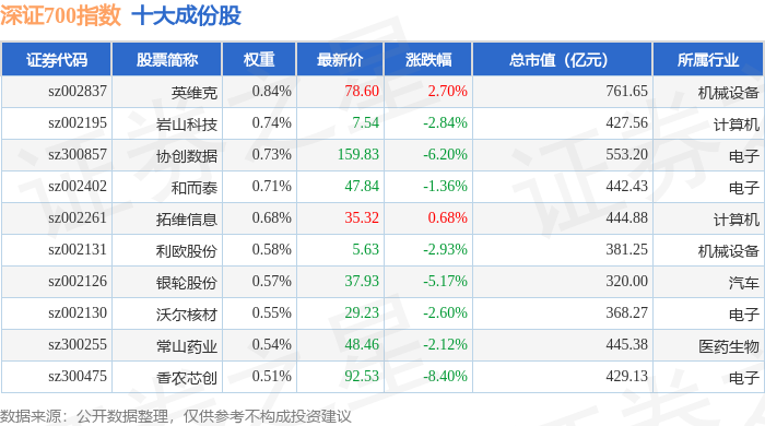 深证700(399010)指数十大成份股详情如下: