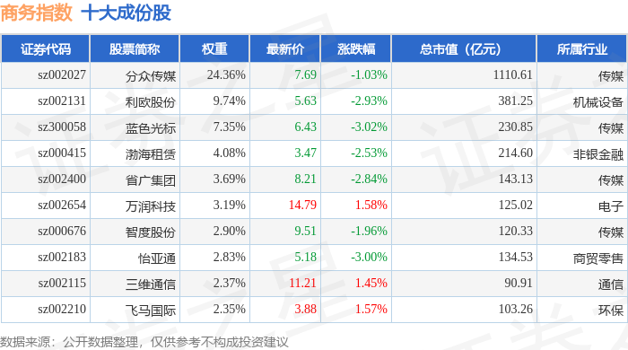近10日内商务指数(399242)成份股做了调整,新纳入了1只股票。