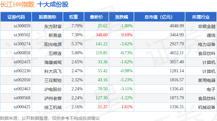 证券之星消息,10月13日,长江100(399278)指数报收于2077.32点,跌0.84%,成交2041.71亿元,换手率2.25%。当日该指数成份股中,上涨的有29家,中国稀土以10.01%的涨幅领涨,下跌的有69家,蓝思科技以5.24%的跌幅领跌。