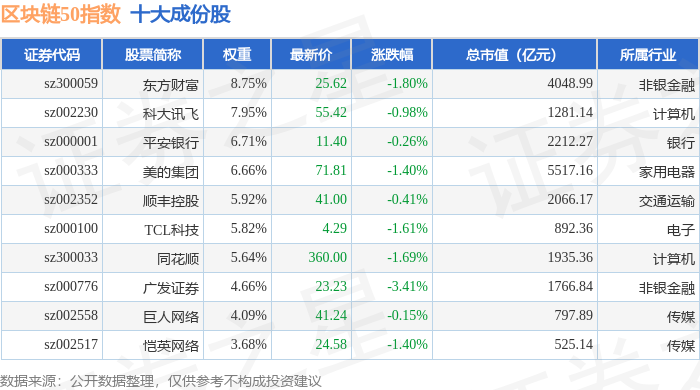 资金流向方面,区块链50(399286)指数成份股当日主力资金净流出合计19.33亿元,游资资金净流入合计1.48亿元,散户资金净流入合计17.86亿元。成份股资金流向详情见下表: