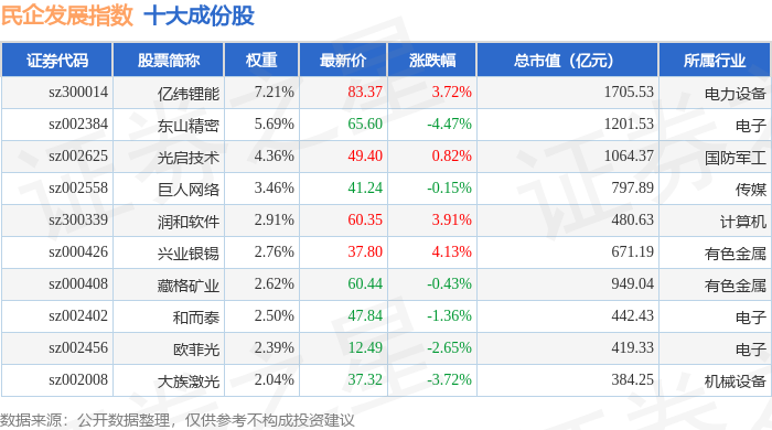 资金流向方面,民企发展(399292)指数成份股当日主力资金净流出合计33.21亿元,游资资金净流入合计3.19亿元,散户资金净流入合计30.02亿元。成份股资金流向详情见下表: