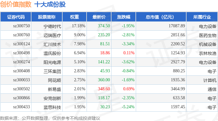 创价值(399295)指数十大成份股详情如下: