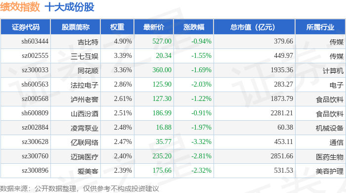 证券之星消息,10月13日,绩效指数(399398)报收于10805.61点,跌1.33%,成交793.03亿元,换手率1.07%。当日该指数成份股中,上涨的有17家,横店东磁以5.4%的涨幅领涨,下跌的有83家,养元饮品以9.21%的跌幅领跌。