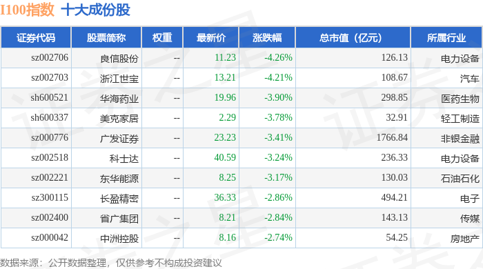 I100(399415)指数十大成份股详情如下:
