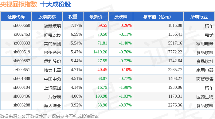 资金流向方面,央视回报(399553)指数成份股当日主力资金净流出合计7.76亿元,游资资金净流入合计5.81亿元,散户资金净流入合计1.95亿元。成份股资金流向详情见下表: