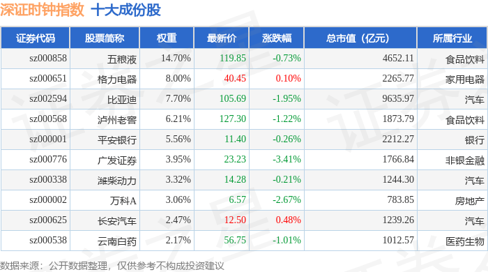 证券之星消息,10月13日,深证时钟(399644)指数报收于3577.42点,跌0.51%,成交844.22亿元,换手率2.6%。当日该指数成份股中,上涨的有30家,安泰科技以9.99%的涨幅领涨,下跌的有70家,宁波华翔以8.51%的跌幅领跌。