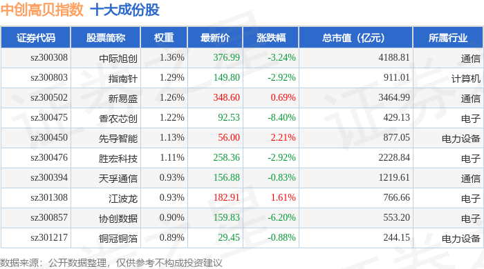 证券之星消息,10月13日,中创高贝(399666)指数报收于1992.87点,跌0.22%,成交3264.34亿元,换手率4.3%。当日该指数成份股中,上涨的有75家,新莱应材以20.0%的涨幅领涨,下跌的有124家,香农芯创以8.4%的跌幅领跌。