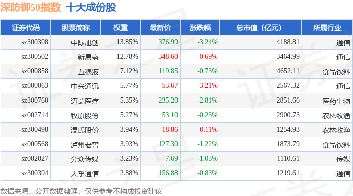 深防御50(399671)指数十大成份股详情如下:
