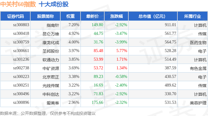 资金流向方面,中关村60(399697)指数成份股当日主力资金净流出合计14.48亿元,游资资金净流入合计4.01亿元,散户资金净流入合计10.47亿元。成份股资金流向详情见下表: