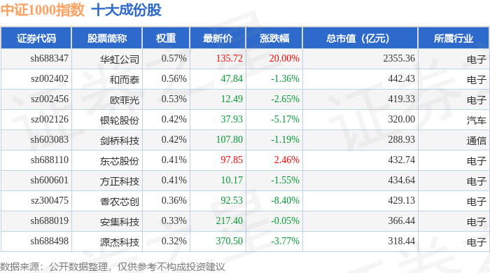 证券之星消息,10月13日,中证1000(399852)指数报收于7519.76点,跌0.19%,成交4709.91亿元,换手率2.97%。当日该指数成份股中,上涨的有291家,华虹公司以20.0%的涨幅领涨,下跌的有690家,中熔电气以8.86%的跌幅领跌。
