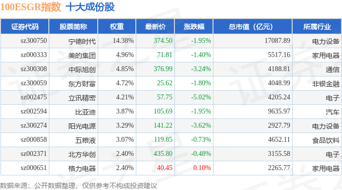 100ESGR(470027)指数十大成份股详情如下: