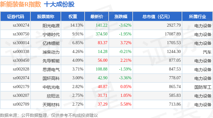 资金流向方面,新能装备R(470043)指数成份股当日主力资金净流出合计38.66亿元,游资资金净流入合计7.32亿元,散户资金净流入合计31.34亿元。成份股资金流向详情见下表: