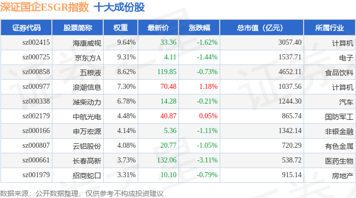 深证国企ESGR(470055)指数十大成份股详情如下:
