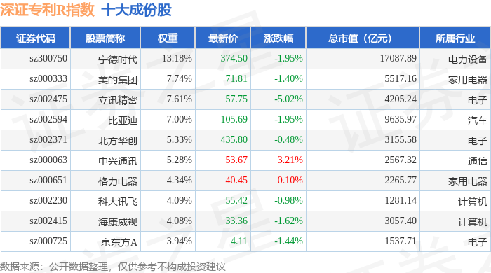 证券之星消息,10月13日,深证专利R(470067)指数报收于6111.72点,跌1.25%,成交1398.16亿元,换手率2.53%。当日该指数成份股中,上涨的有14家,华大九天以11.78%的涨幅领涨,下跌的有35家,歌尔股份以6.8%的跌幅领跌。