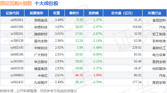 国证回购R(480063)指数十大成份股详情如下: