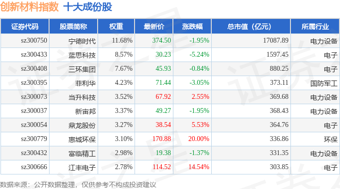 创新材料(970039)指数十大成份股详情如下: