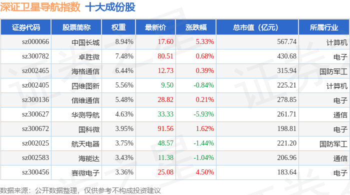 深证卫星导航(970050)指数十大成份股详情如下: