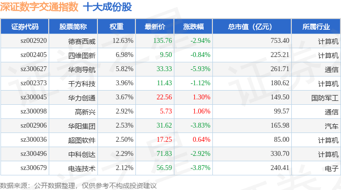 深证数字交通(970049)指数十大成份股详情如下: