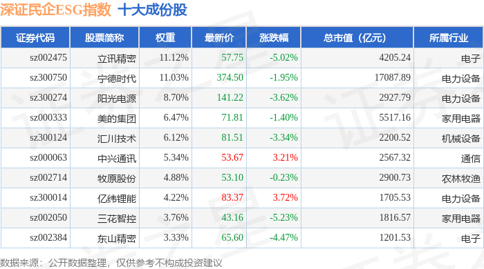 资金流向方面,深证民企ESG(970056)指数成份股当日主力资金净流出合计44.95亿元,游资资金净流入合计6.18亿元,散户资金净流入合计38.78亿元。成份股资金流向详情见下表: