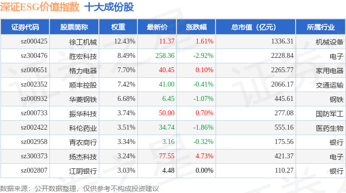 证券之星消息,10月13日,深证ESG价值(970061)指数报收于1655.21点,涨0.04%,成交370.44亿元,换手率2.01%。当日该指数成份股中,上涨的有16家,奥瑞金以10.02%的涨幅领涨,下跌的有33家,胜宏科技以2.92%的跌幅领跌。