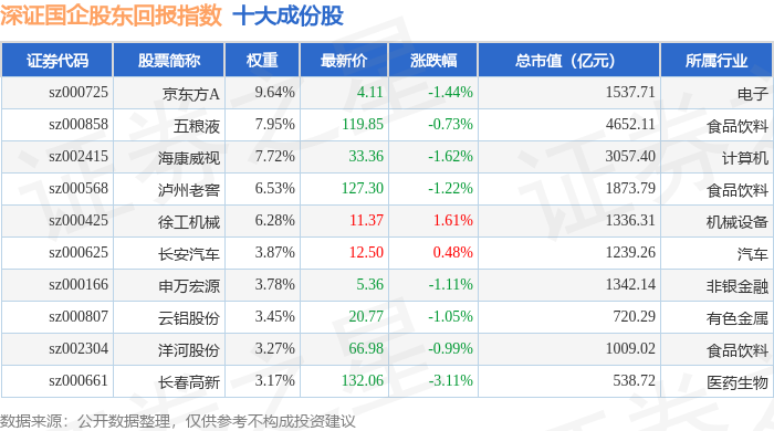 深证国企股东回报(970064)指数十大成份股详情如下: