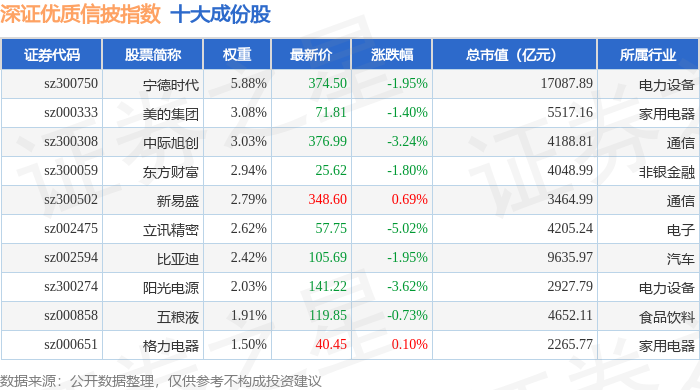 深证优质信披(970065)指数十大成份股详情如下: