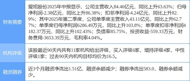 今日爱旭股份(600732)涨5.91%,收盘报16.66元。