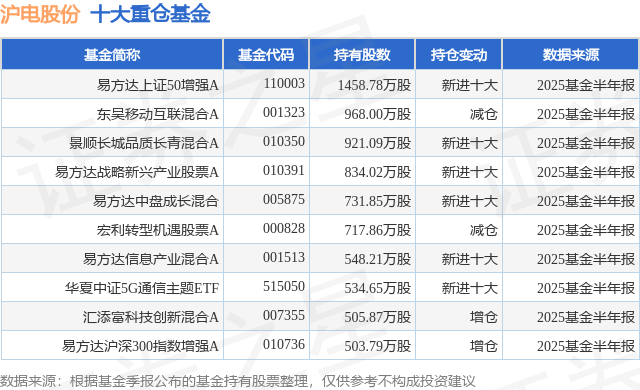 根据2025基金半年报公募基金重仓股数据,重仓该股的公募基金共323家,其中持有数量最多的公募基金为易方达基金的易方达上证50增强A。易方达上证50增强A目前规模为164.48亿元,最新净值2.0998(10月13日),较上一交易日下跌1.27%,近一年上涨8.93%。该公募基金现任基金经理为张胜记。张胜记在任的基金产品包括:易方达沪深300指数增强A,管理时间为2020年12月30日至今,期间收益率为3.76%;易方达金融行业股票发起式A,管理时间为2024年3月2日至今,期间收益率为62.28%;易方达上证50增强策略ETF,管理时间为2024年5月27日至今,期间收益率为24.93%。