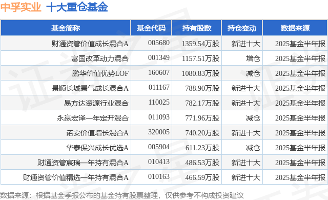 重仓中孚实业的前十大公募基金请见下表: