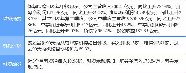 2025年8月29日,国金证券研究员舒思勤,黄佳慧,夏昌盛发布了对新华保险的研报《归母净利+33.5%、NBV+58.4%》,该研报对新华保险给出“买入”评级。证券之星数据中心根据近三年发布的研报数据计算,该研报作者对此股的盈利预测准确度为76.25%。
