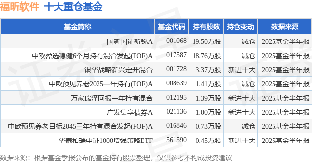 根据2025基金半年报公募基金重仓股数据,重仓该股的公募基金共8家,其中持有数量最多的公募基金为国新国证基金的国新国证新锐A。国新国证新锐A目前规模为1.37亿元,最新净值1.689(10月13日),较上一交易日上涨1.38%,近一年上涨53.83%。该公募基金现任基金经理为张洪磊。张洪磊在任的基金产品包括:国新国证新利混合A,管理时间为2025年6月19日至今,期间收益率为7.3%。