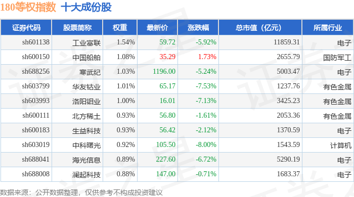 证券之星消息,10月14日,180等权(000051)指数报收于9305.79点,跌0.7%,成交4609.91亿元,换手率0.96%。当日该指数成份股中,上涨的有93家,天合光能以8.39%的涨幅领涨,下跌的有79家,中科曙光以8.0%的跌幅领跌。