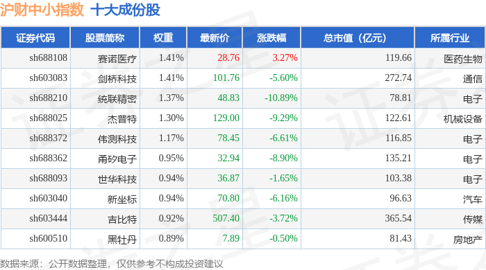 沪财中小(000091)指数十大成份股详情如下:
