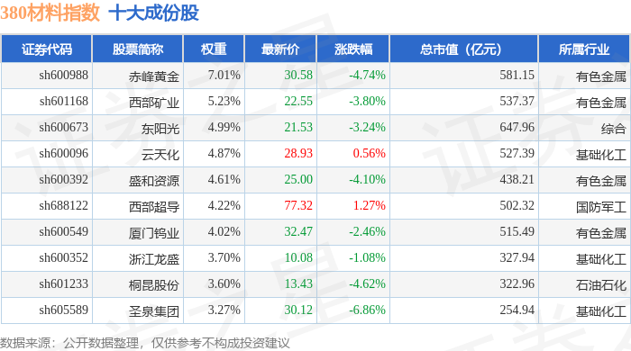 证券之星消息,10月14日,380材料(000105)指数报收于5070.33点,跌2.15%,成交431.09亿元,换手率2.94%。当日该指数成份股中,上涨的有10家,鄂尔多斯以4.07%的涨幅领涨,下跌的有38家,彤程新材以7.01%的跌幅领跌。