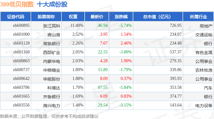 380低贝(000138)指数十大成份股详情如下: