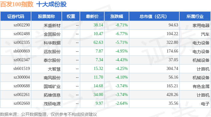 百发100(000851)指数十大成份股详情如下: