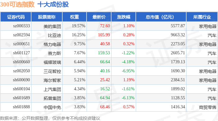 300可选(000911)指数十大成份股详情如下: