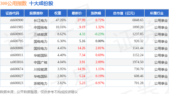资金流向方面,300公用(000917)指数成份股当日主力资金净流入合计2.96亿元,游资资金净流出合计3.47亿元,散户资金净流入合计5118.72万元。成份股资金流向详情见下表: