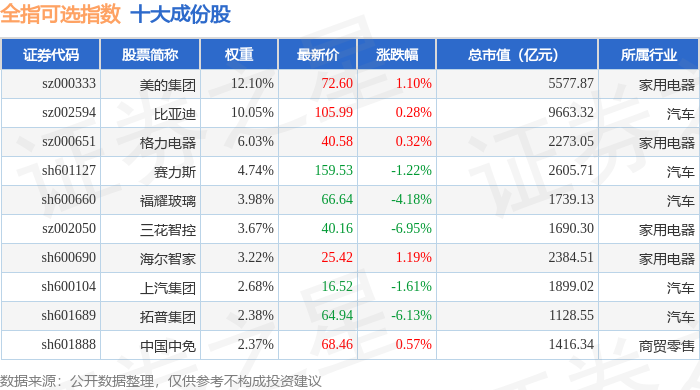 全指可选(000989)指数十大成份股详情如下: