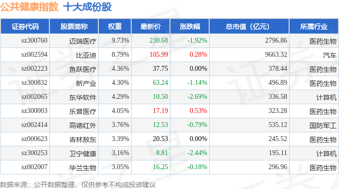 证券之星消息,10月14日,公共健康(399277)指数报收于2767.87点,跌0.61%,成交256.4亿元,换手率2.2%。当日该指数成份股中,上涨的有12家,英科医疗以12.69%的涨幅领涨,下跌的有35家,舒泰神以5.65%的跌幅领跌。