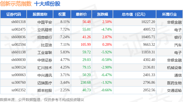证券之星消息,10月14日,创新示范(399351)指数报收于10631.03点,跌2.18%,成交1893.33亿元,换手率2.22%。当日该指数成份股中,上涨的有22家,招商银行以2.87%的涨幅领涨,下跌的有78家,电连技术以9.17%的跌幅领跌。