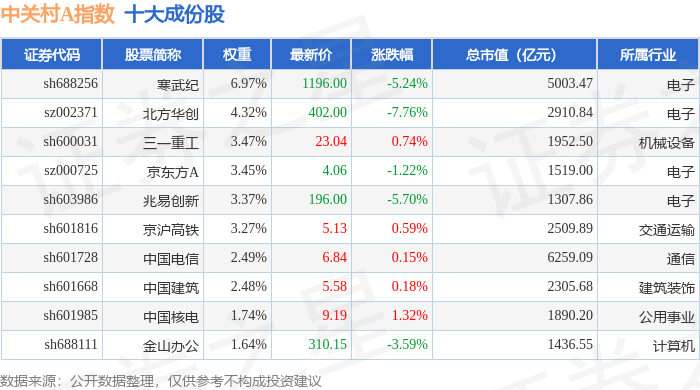 中关村A(399422)指数十大成份股详情如下: